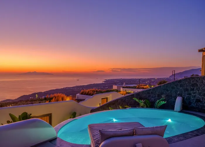 Die 8-Zimmer- Secret Path Luxury Villas Imerovigli verfügt über eine Terrasse mit Blick aufs Meer und ist 15 Autominuten vom Flughafen Santorin entfernt gelegen. Die Villa bietet einen privaten Swimmingpool sowie einen Jacuzzi, damit Sie sich nach einem anstrengenden Tag entspannen können.
